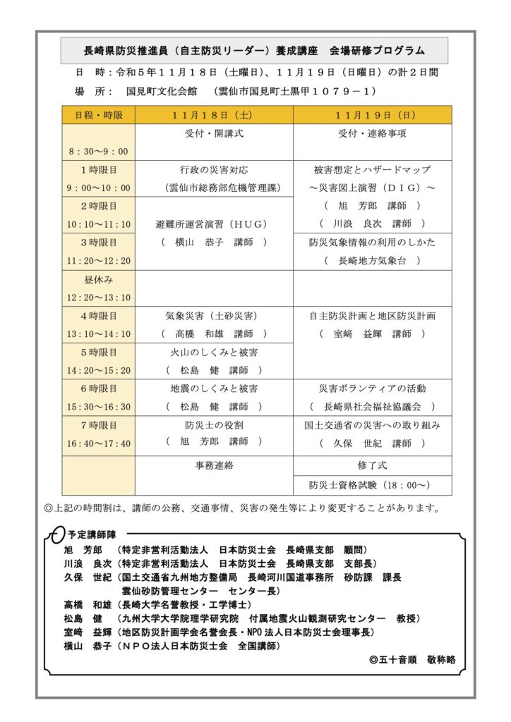 | 研修 | 長崎県防災推進員(自主防災リーダー)養成講座 |