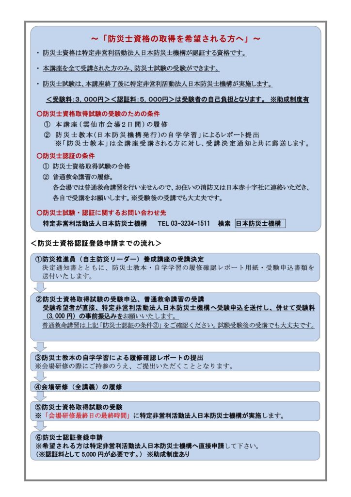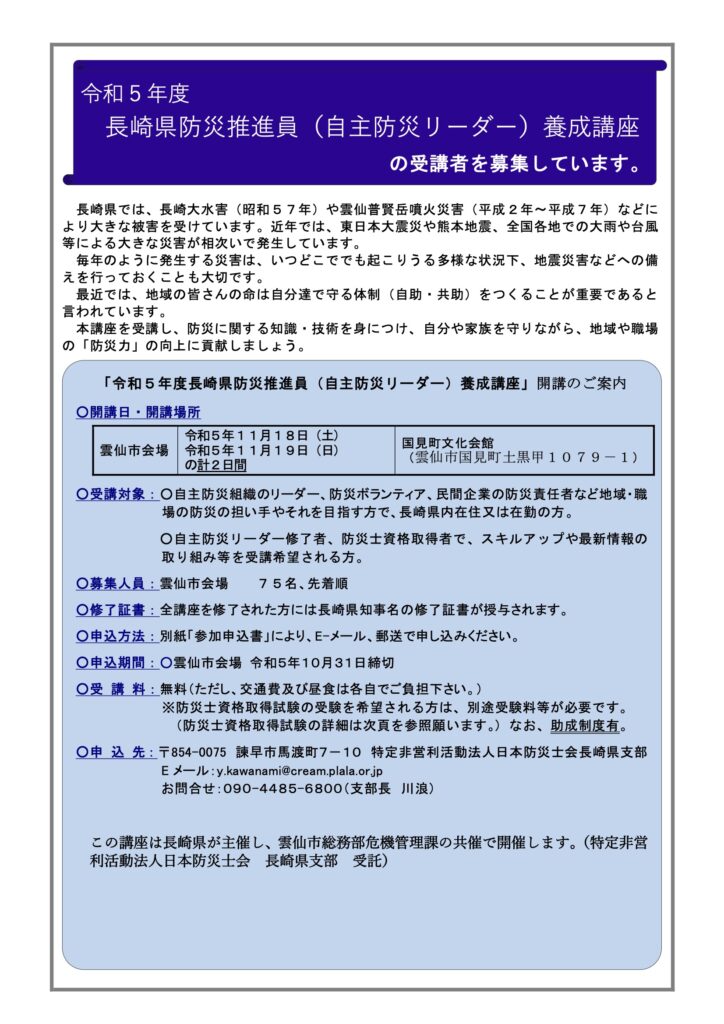 なお、この講座は長崎県が主催し雲仙市総務部危機管理課の共催で開催します