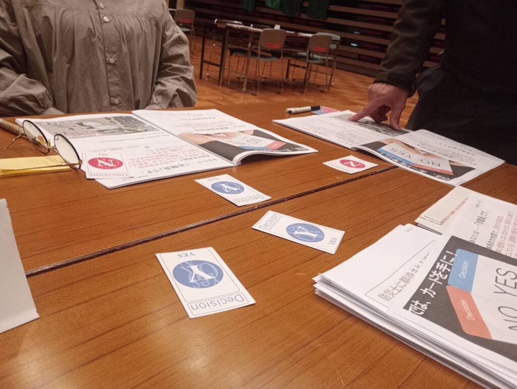 防災クロスロードゲームは災害時における状況をYes・Noで判断し,その時の問題を深く考えるゲームです。